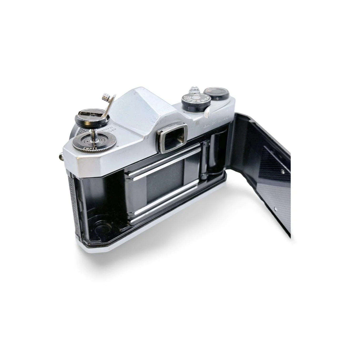 • TTL center‑weighted metering using three CdS cells, ISO 12–3200.